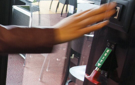 Automatische Türen von record wurden nach höchsten Vorgaben an ihre Sicherheit und Zuverlässigkeit konstruiert. Bei einem Stromausfall jedoch versagt jede automatische Tür ihren Dienst, solange sie nicht mit einem Akkupack für die elektrische Notöffnung oder den Notbetrieb ausgerüstet ist. Für diesen Fall kann Ihre automatische Tür mit einer mechanischen Notentriegelung versehen werden, die über eine robuste Bowdenzugkonstruktion die Verriegelung löst oder bei Break-out-Anlagen die Türflügel zum Aufschwenken entriegelt.