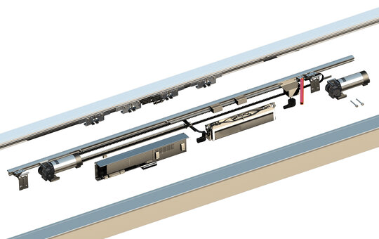 L'entraînement renforcé DUO est pourvu d'un second moteur et d'une commande adaptée à ce dernier. Il comble la lacune entre l'entraînement de porte coulissante polyvalent record STA 20 et le record STA 22 conçu pour les portes automatiques particulièrement lourdes. Contrairement à ce dernier, l'entraînement DUO est disponible également en 108 et 150 mm de hauteur pour les entraînements avec boîtiers de faible hauteur.
